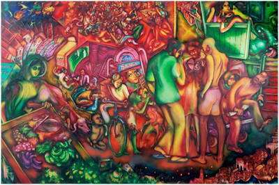 Gulam Mohammed Sheikh, “City for sale”, 1981-84, Oil on Canvas, 204.5 cm x 306 cm.